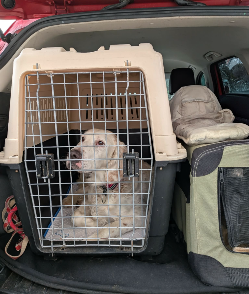 実猟犬の特徴、車に設置したケージに、躊躇なく飛び乗ります。
